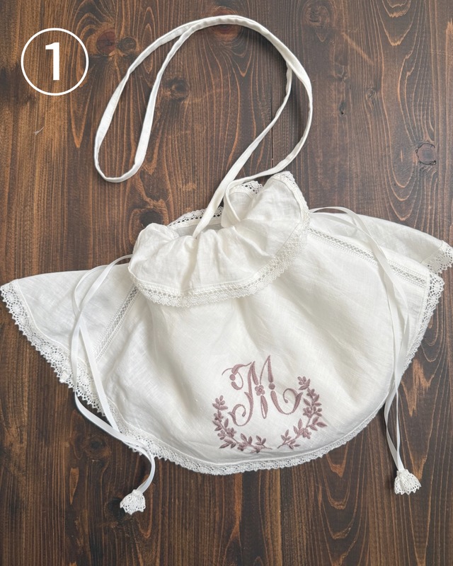 【商品名】すずらんポシェット 【カラー】①ホワイトポシェット 刺繍糸 くすみピンク ②キナリポシェット 刺繍糸 ライトベージュ ③ブラックポシェット 刺繍糸 オフホワイト ④ブラックポシェット 刺繍糸 アッシュグレー ※写真上と実物の色の見え方に、 多少の違いがある場合が ございますので、あらかじめご了承くださいませ。 【素 材】フレンチリネン100% ※レースはコットン ※間口を縛る紐はポリエステル 【サイズ】表面 横 58㎝(最長) 表面 縦 24㎝(最長) 内側 ポシェット 高さ 20㎝ 横幅 26㎝ 底横幅 18㎝ ※底は楕円形 底縦幅 7㎝ 紐 120㎝(長さ調整&取り外し可能) お客様から肩掛けできるポシェットがあったらいいな♡と ご要望をいただきまして、 肩掛けもできる♡ カゴバックに入れても使える♡ お好きなモノグラム刺繍を入れられる♡ \5wayポシェット/をお作りしました♪ そんなポシェットをなんと! 即納でお迎えいただけます♡ その5wayの使い方は ♡リバーシブルで使える(ポシェットの表側と裏側ひっくり返してOK) ♡肩掛けできる(斜めがけ&肩掛け) ♡紐の長さを調節して手持ちポシェットとしても使える ♡カゴバックに入れても使える 表面のヒラヒラの部分と内側のポシェット部分は 生地の厚さを変えて、表面はふんわりすずらんのように 内側のポシェットは型崩れしない厚手の生地で 2重構造でお作りしました♡ ♡ポシェットの口を縛るリボンとレース以外は全て 上質なフレンチリネン100% 【お手入れのポイント】 ⚪︎洗濯の際は、中性洗剤をご使用ください。 ⚪︎ホームクリーニングできますが、手洗いをおすすめします。 ⚪︎注意点として、漂白剤の使用はお控えください。 また、乾燥機のご使用は避けてください。 ⚪︎形を整えて陰干ししてください。
