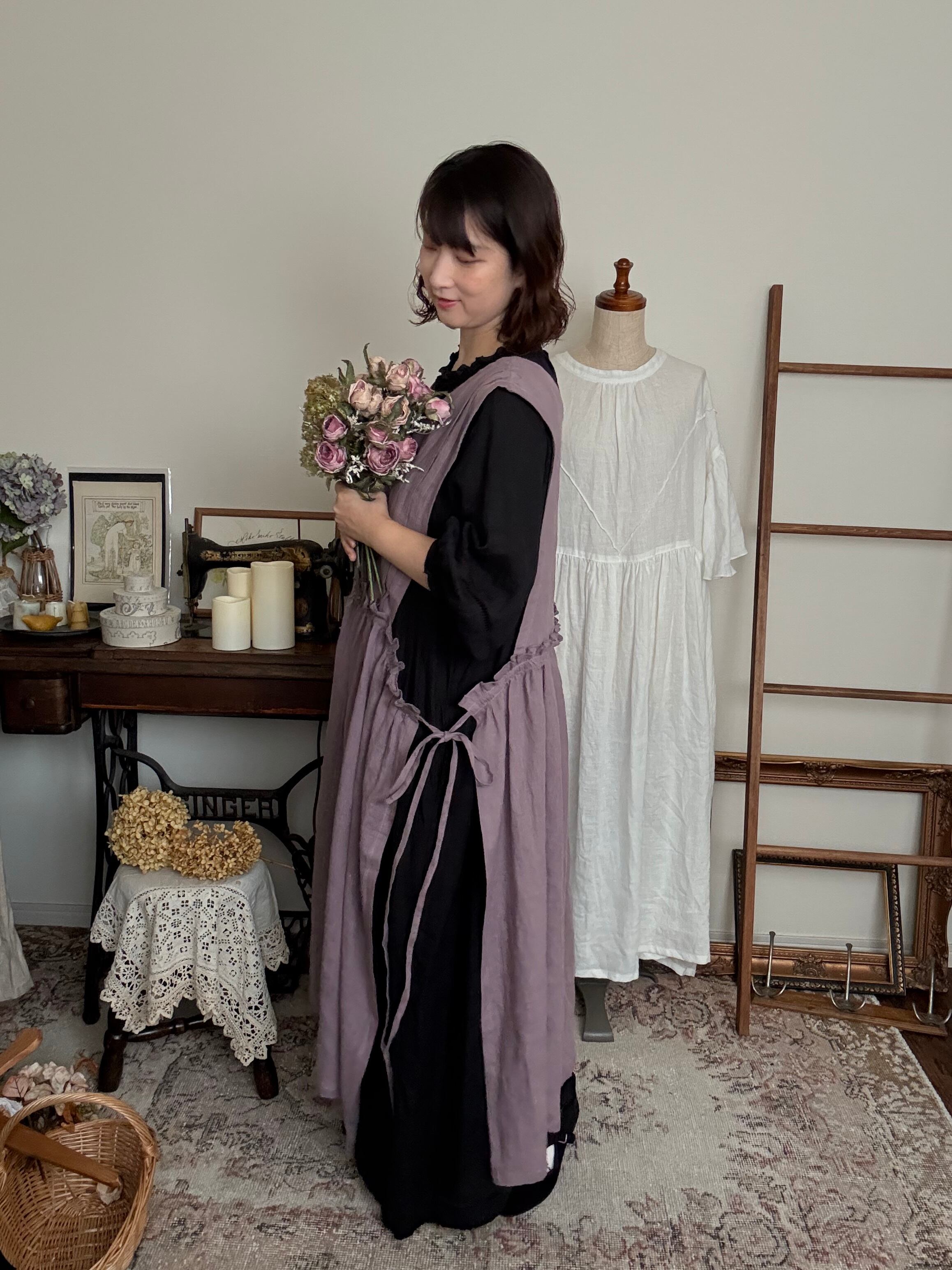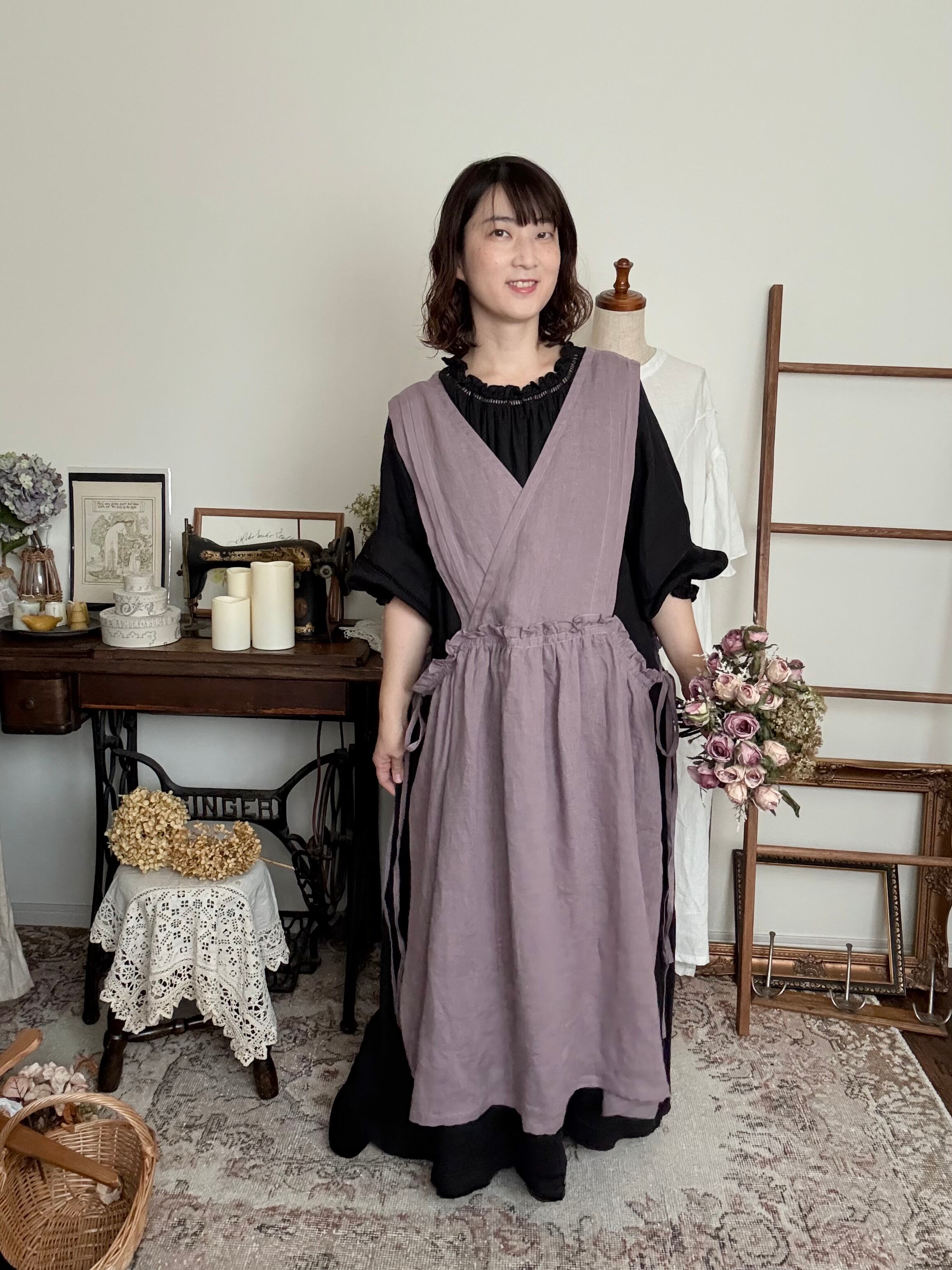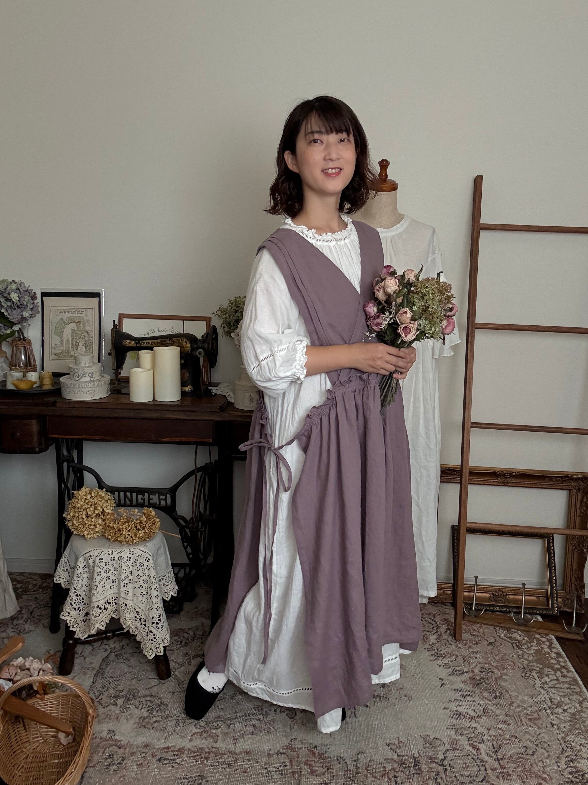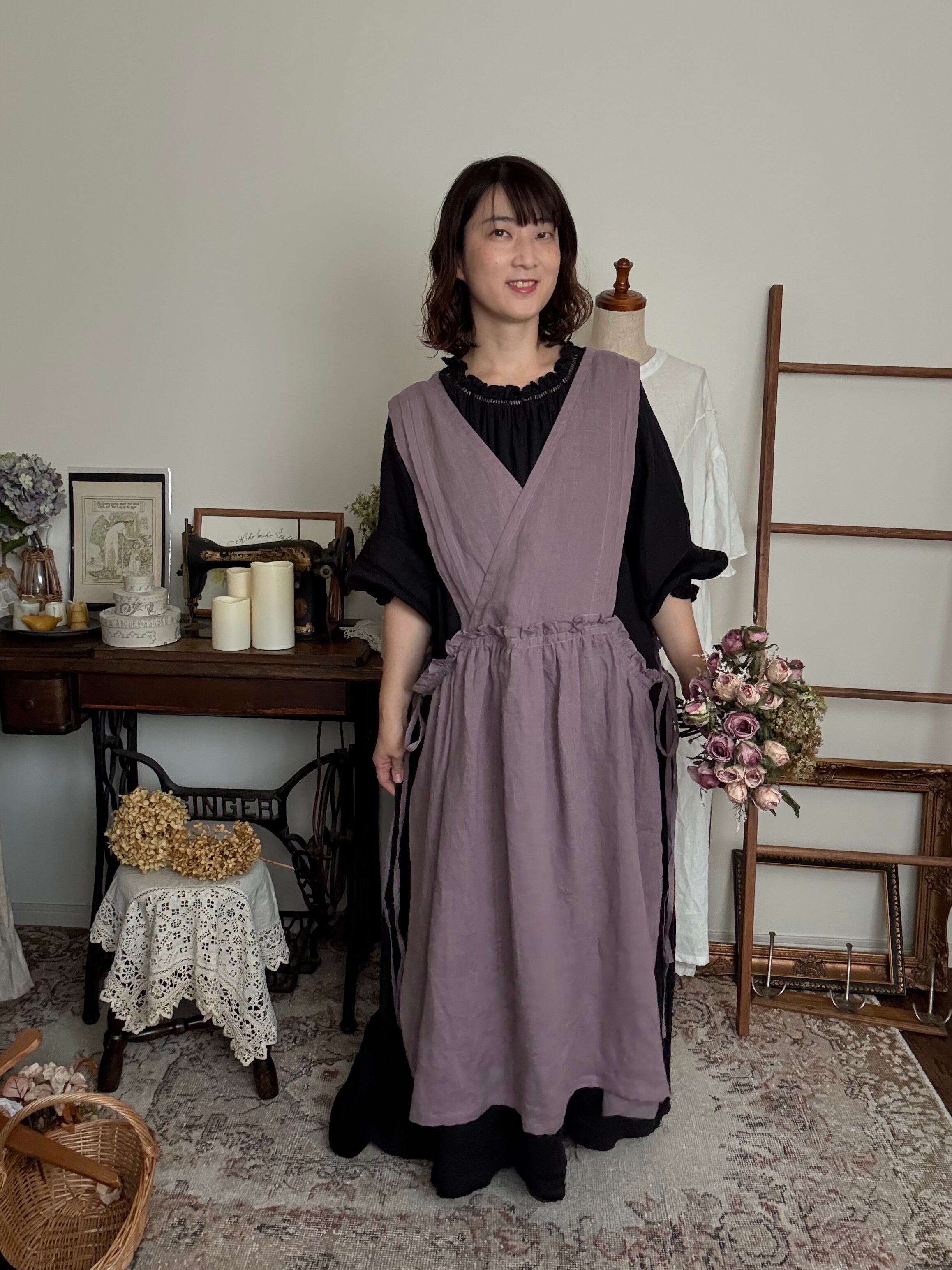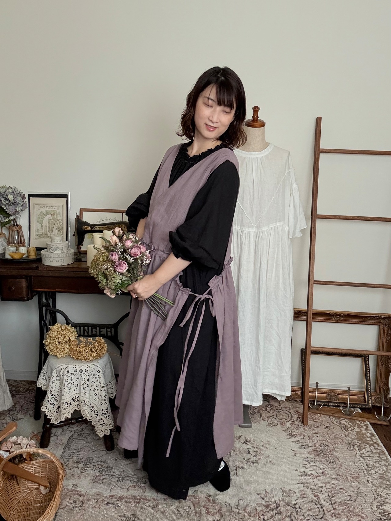 【すみれ】2wayサイドリボンタブリエ フレンチリネン100%