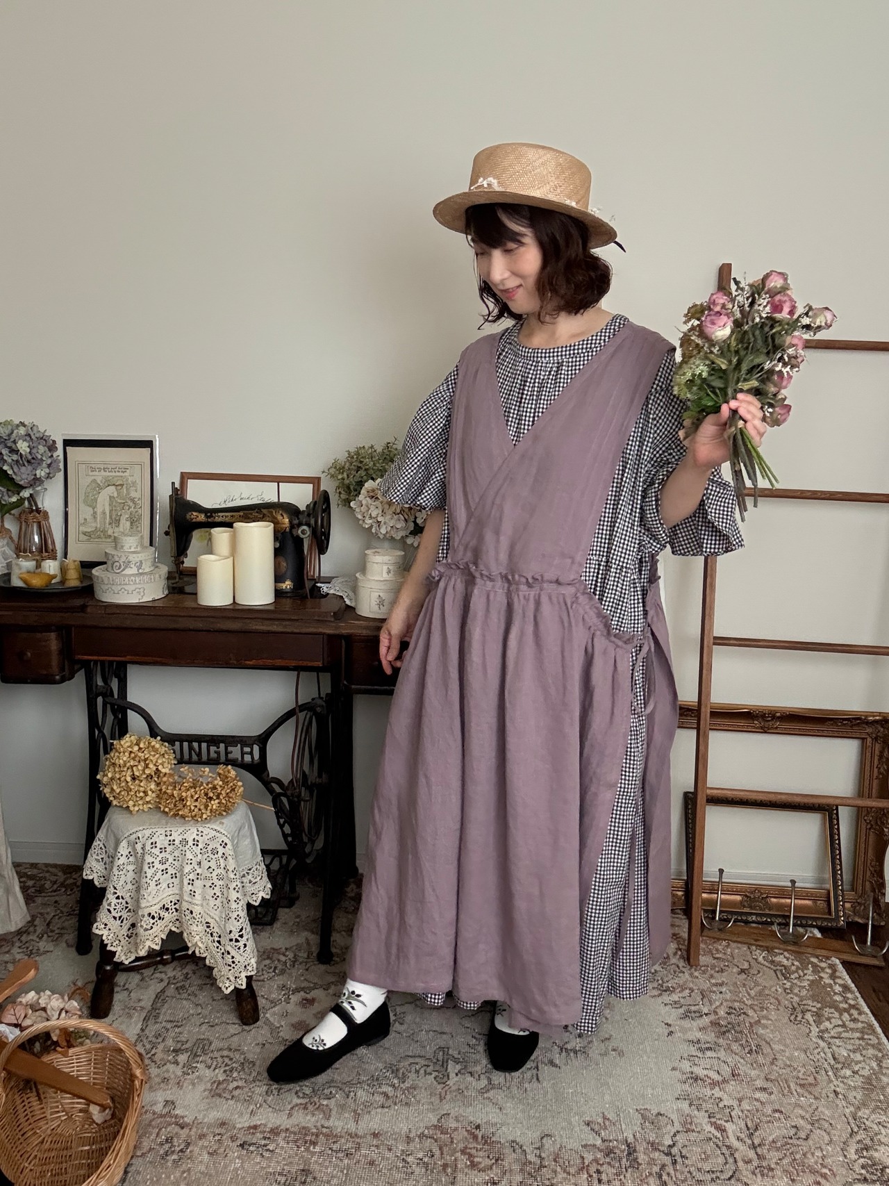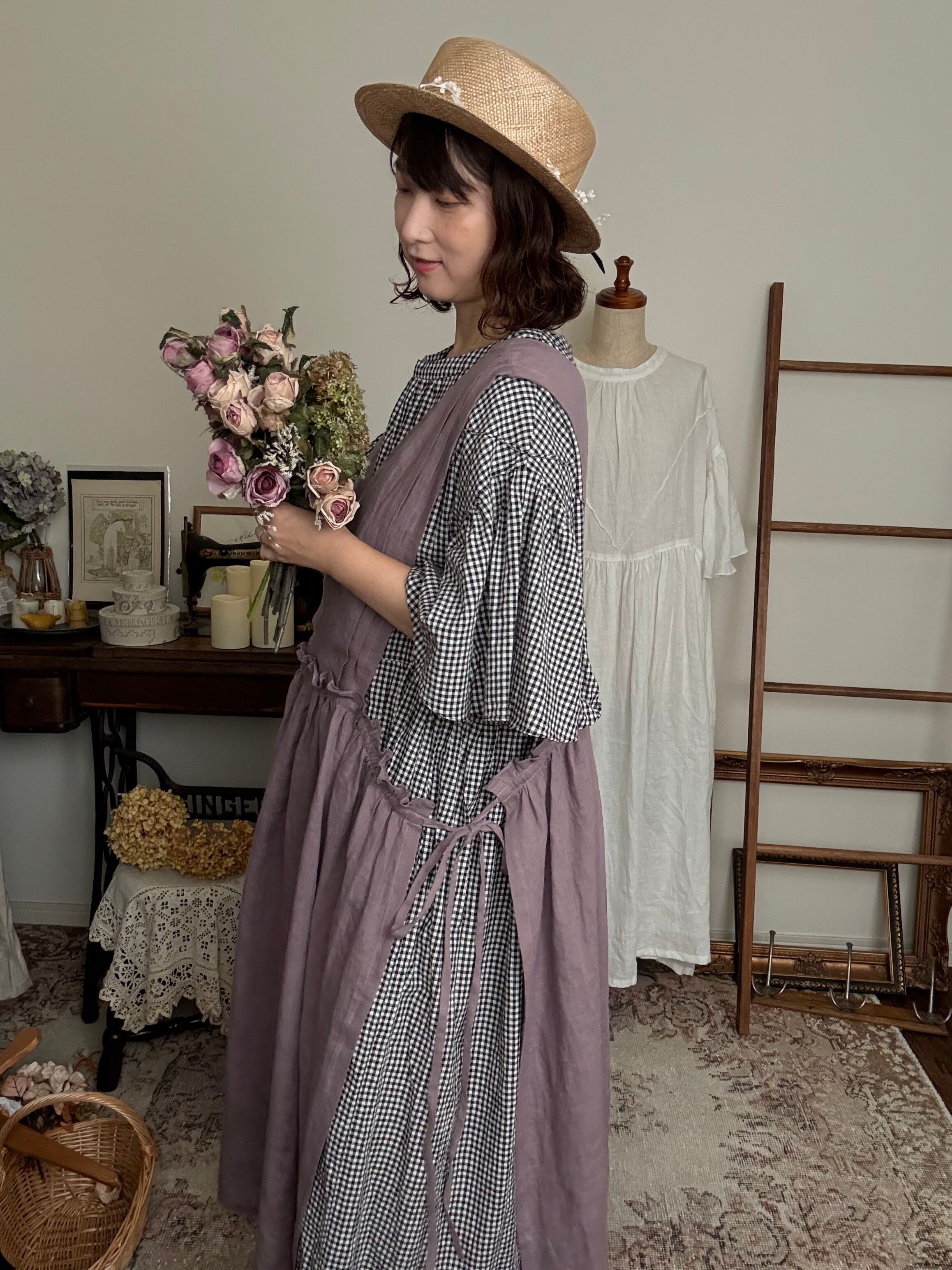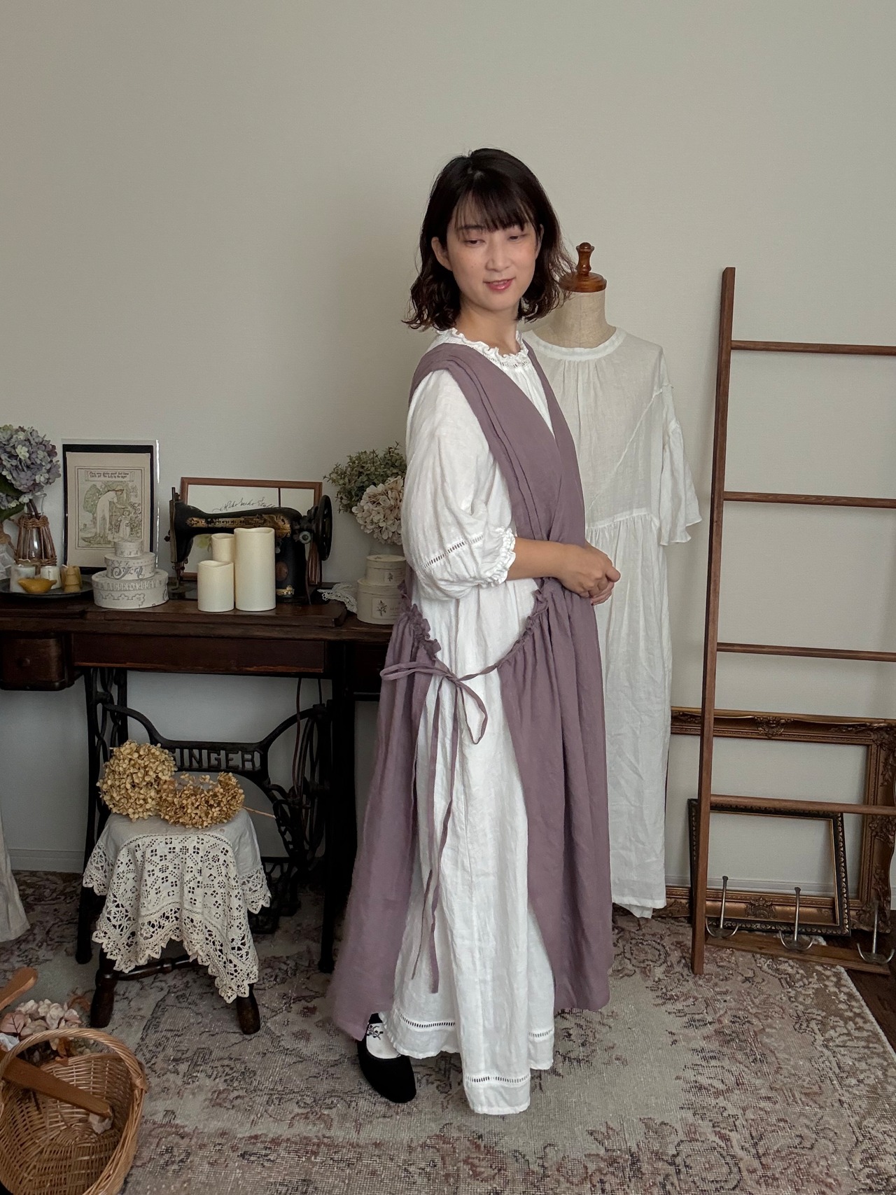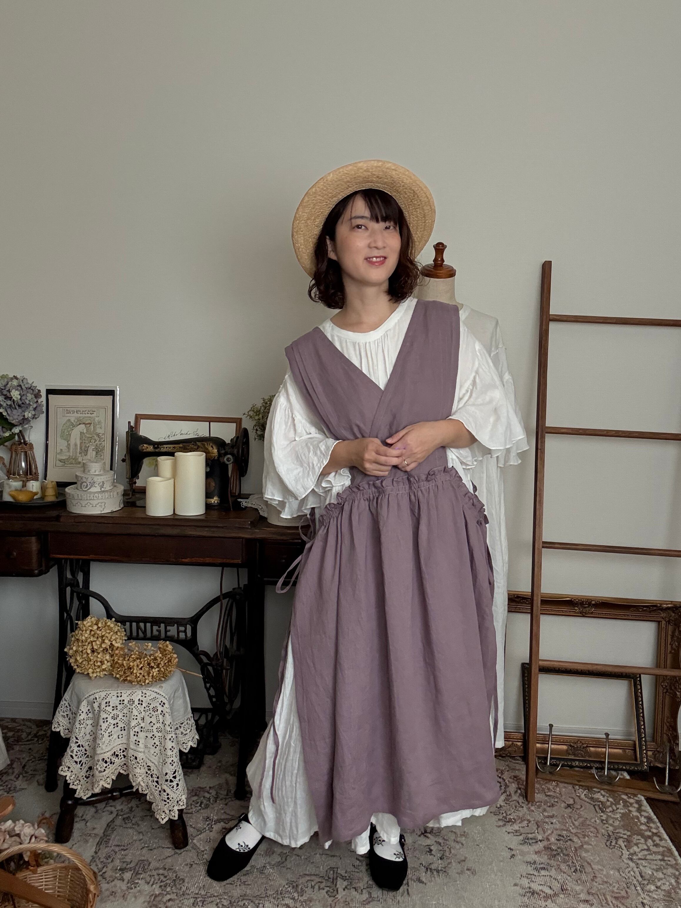 【すみれ】2wayサイドリボンタブリエ フレンチリネン100%