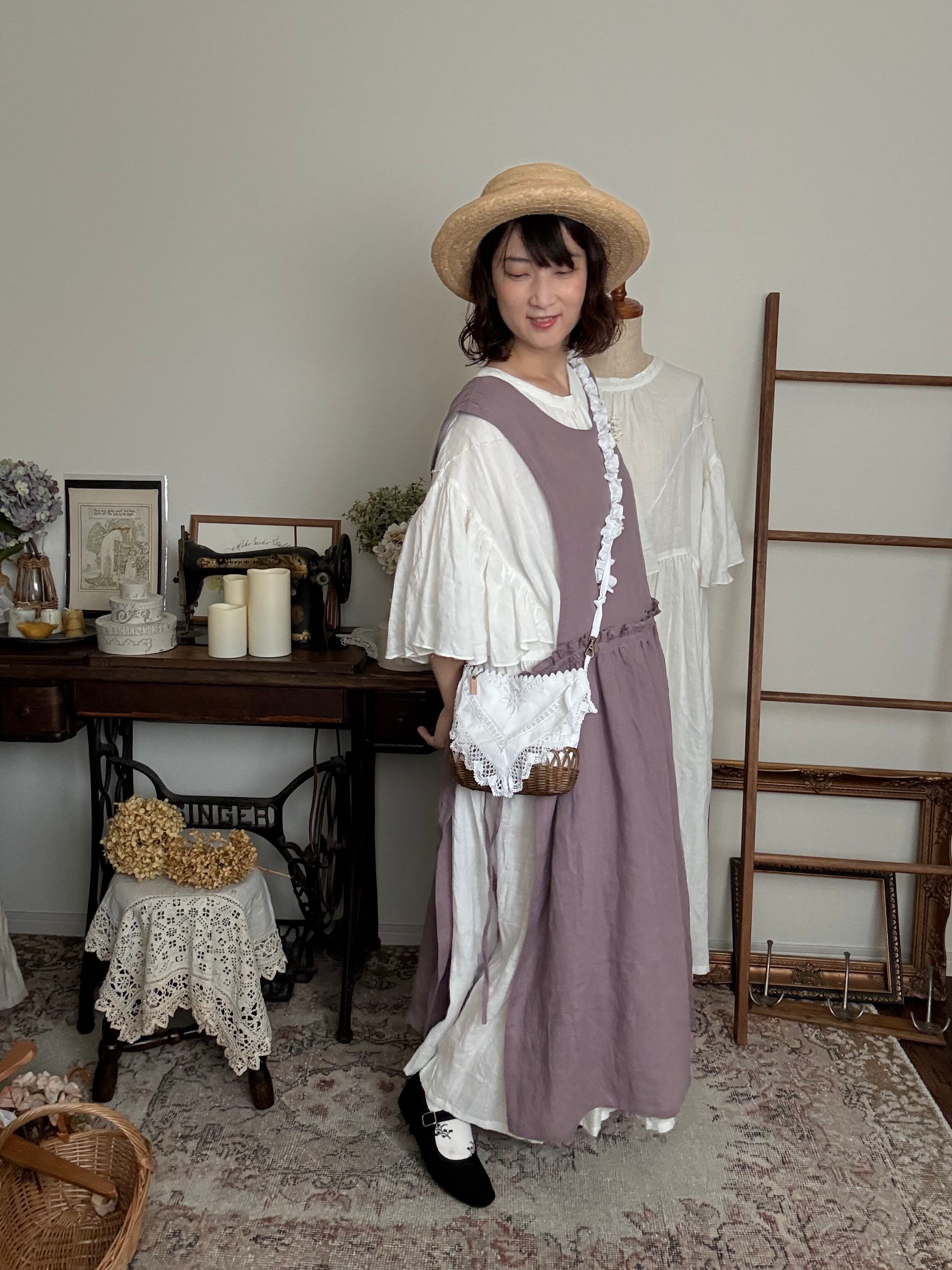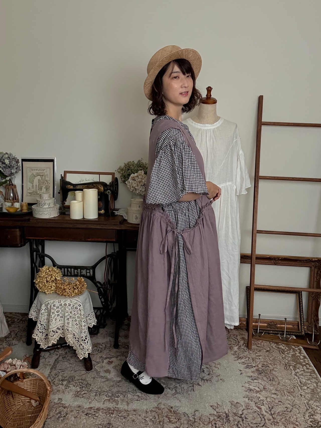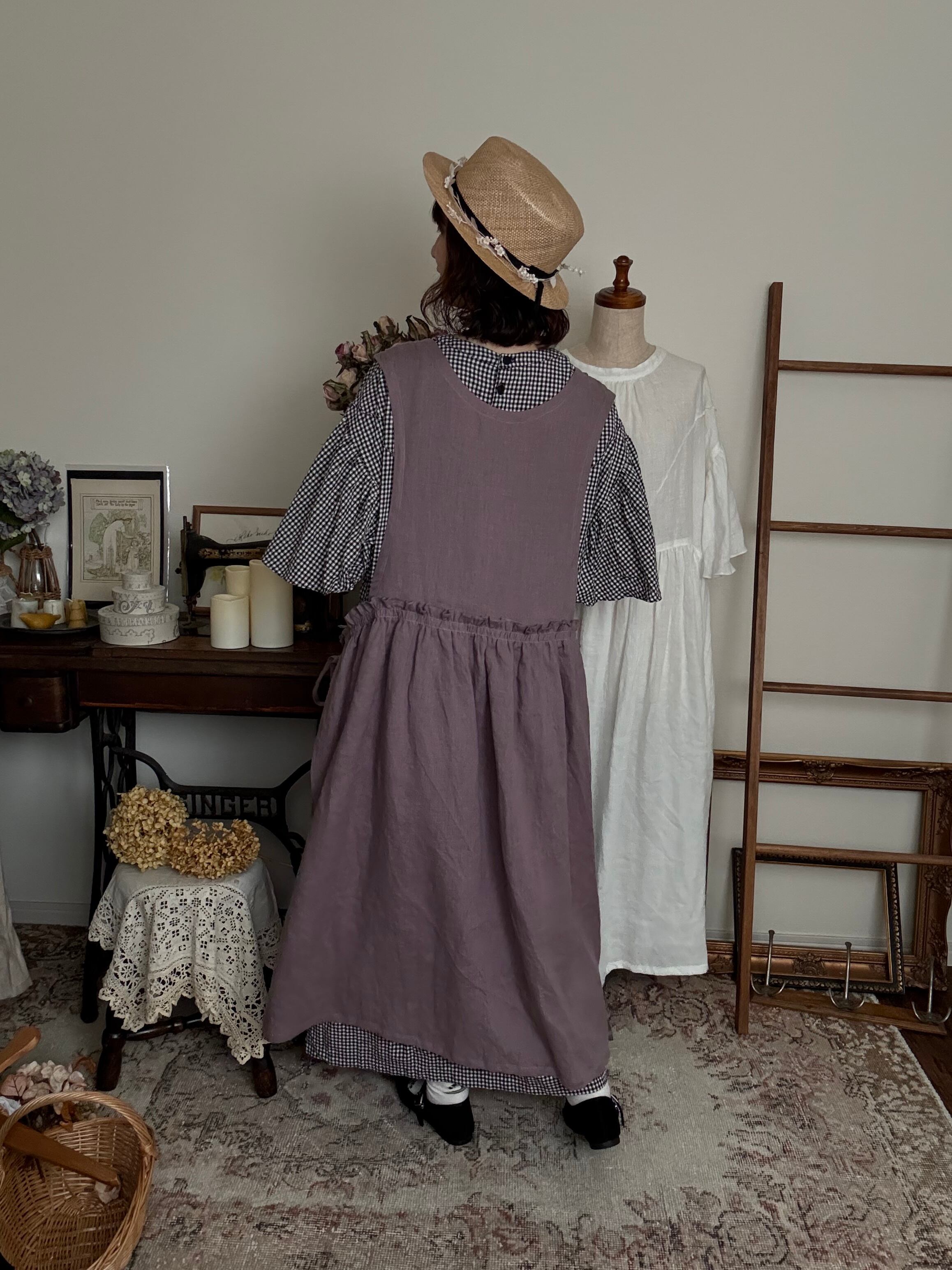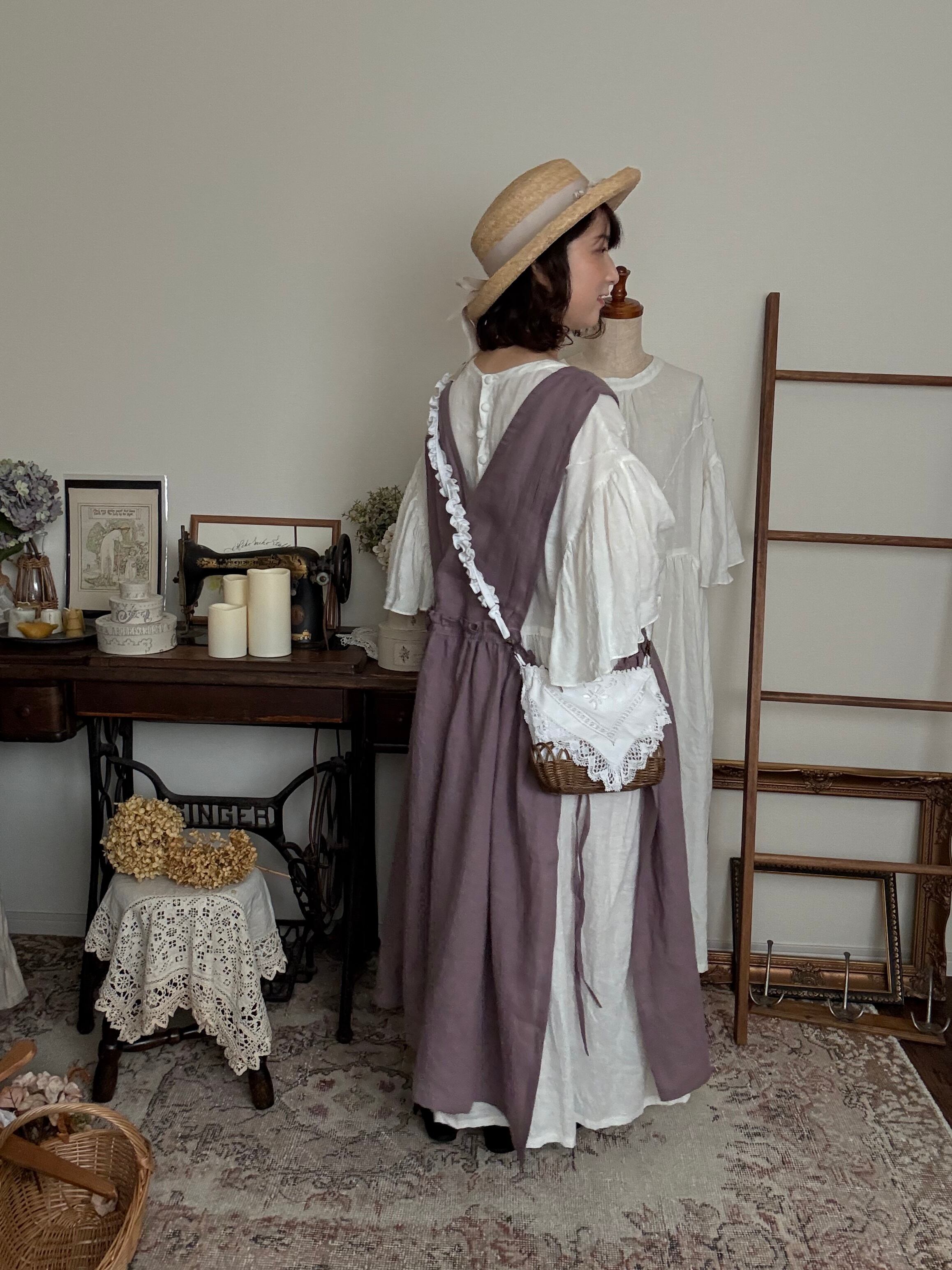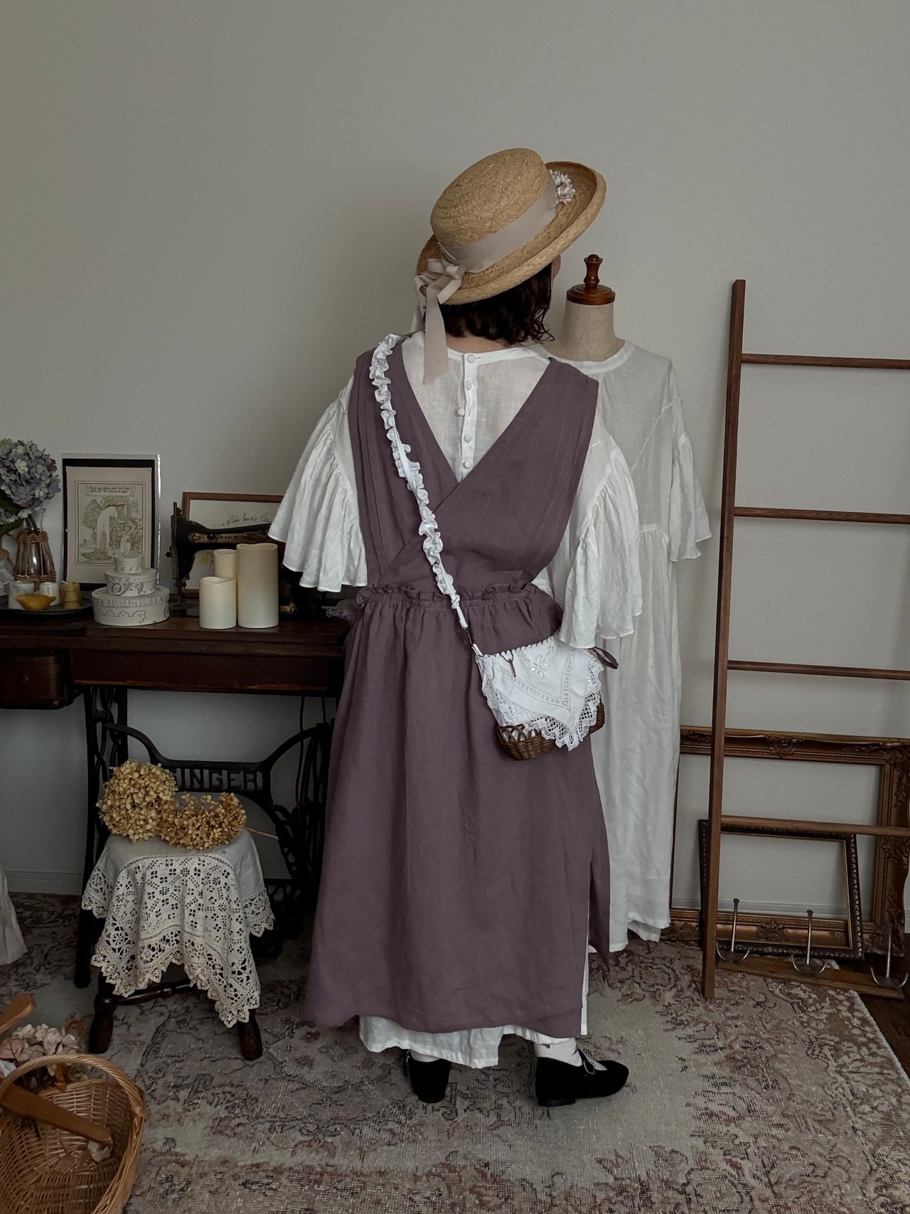 【すみれ】2wayサイドリボンタブリエ フレンチリネン100%
